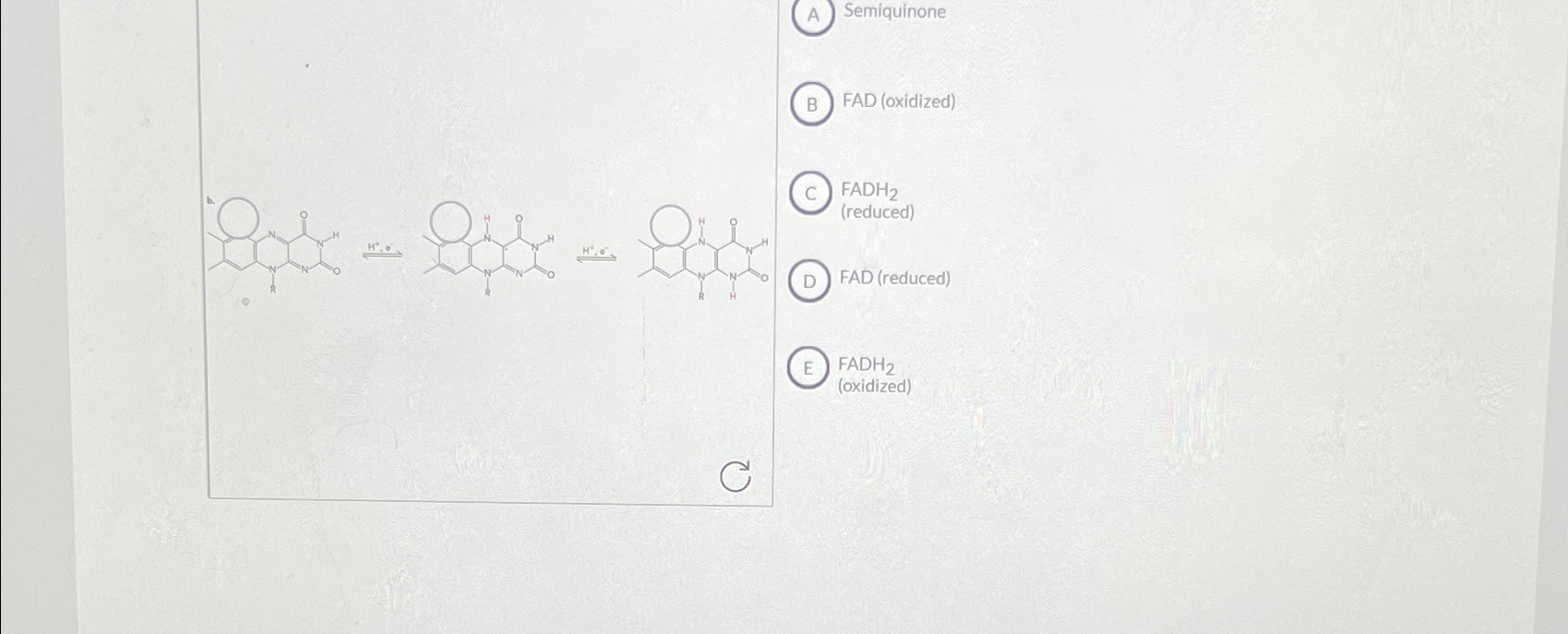 Solved SemiquinoneFAD (oxidized)?H+,C°FADH2(reduced)FAD | Chegg.com